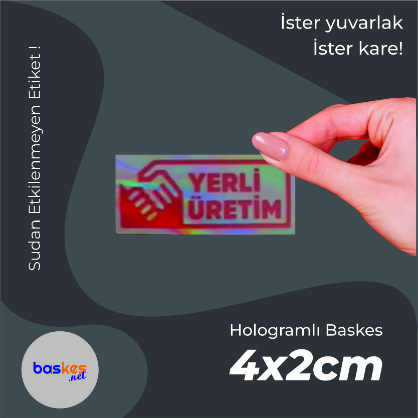 4×2 1000 Adet Hologram Baskes Etiket (Tasarımda beyaz görünümlü yerler hologramlı olacaktır)
