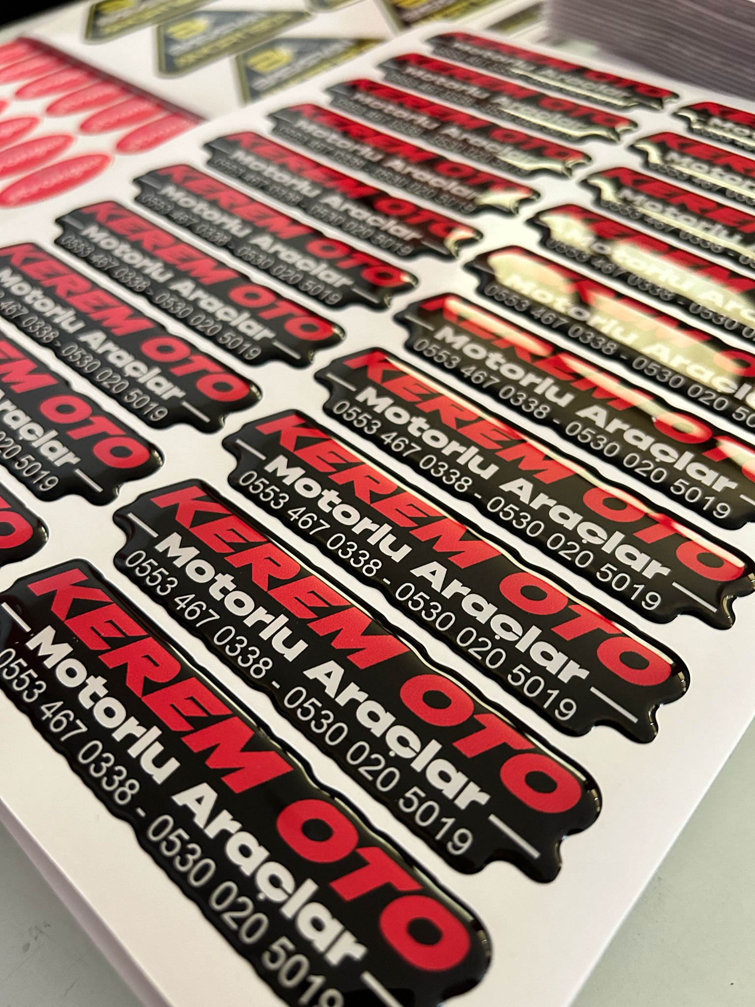 Göz alıcı parlaklığı ve üç boyutlu yapısıyla dikkat çeken damla etiketler, markanızı öne çıkarmanın en şık yollarından biridir. UV korumalı, dayanıklı ve suya karşı dirençli yapısıyla hem iç hem dış mekanlarda uzun ömürlü kullanım sunar. Genellikle logolar, ürün ambalajları, promosyon materyalleri ve elektronik cihazlarda tercih edilir. Kendinden yapışkanlı yapısıyla kolayca uygulanır, profesyonel bir görünüm kazandırır.